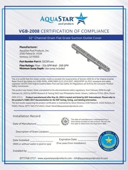 The Virginia Graeme Baker Pool and Spa Safety Act (VGBA) is a federal law enacted to eliminate the hazard of swimming pool and spa entrapment. Signed into law on December 19, 2007, this act directs the Consumer Product Safety Commission to protect the public from risks associated with pool drains, which are classified as consumer products under the ANSI/APSP/ICC-16, 2017 safety standard.